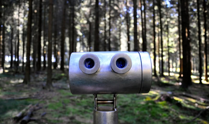 Die Form des „Stereo-Viewers“ vermittelt einen offiziellen Eindruck und erinnert ein wenig an jene Fernrohre, die an Aussichtspunkten den Blick auf touristische Highlights freigeben. In seiner Umgebung gibt der Viewer ein markantes Statement ab, ohne in die Ökologie oder den Bestand des Standortes unverhältnismäßig einzugreifen,