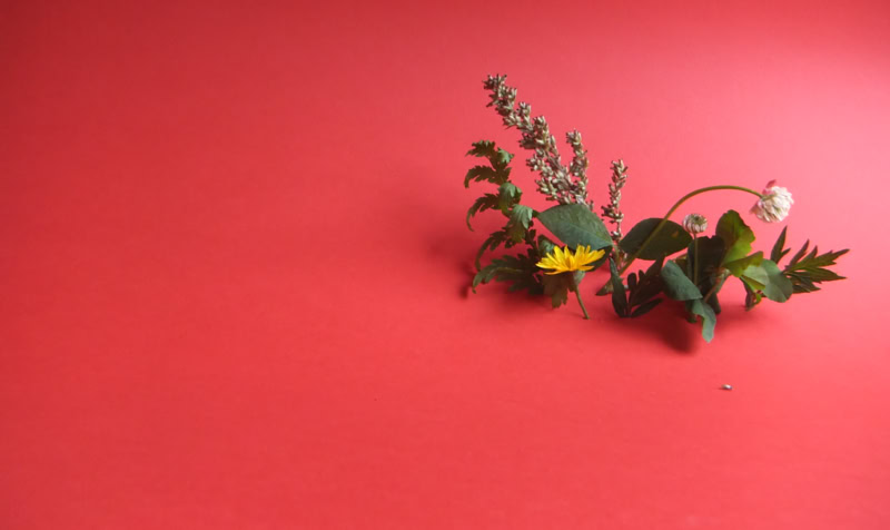 Vor der Betonkulisse einer Bunkeranlage bauen sich mit jedem Bild immer mehr "Pflänzchen" auf, bis sie die Anlage gänzlich "überwuchert" haben.
