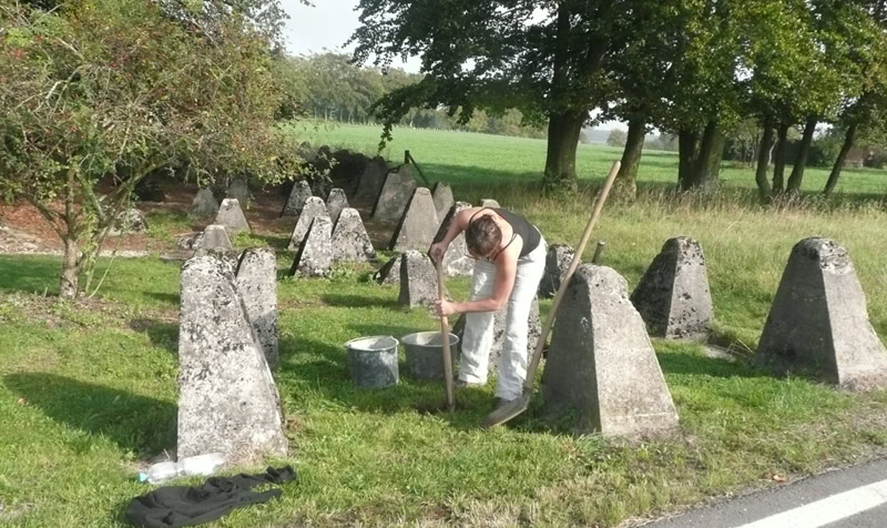 Eine "Höckerlinie", dass bekanteste Bauwerk des "Westwalls", wird Bild für Bild mit alten Vornahmen unserer Großeltern bestückt.