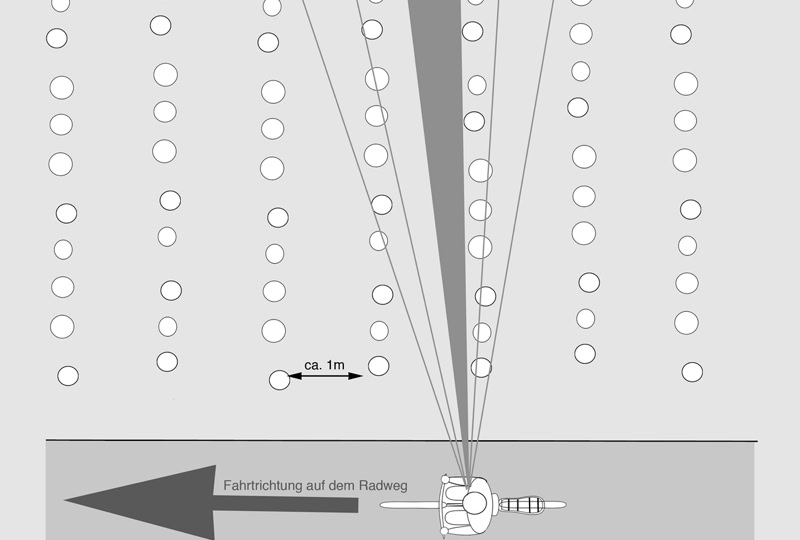 Auf einem Wegabschnitt des Radweges entlang des Bärwalder Sees existiert auf ca. 200 Metern Länge ein Stück Kiefernwald mit jüngeren Baumbeständen. Die Reihen der relativ dicht wachsenden Kiefern stoßen senkrecht auf den Radweg und geben in dem Moment den Blick in die „Tiefe“ des Waldes frei, in dem man diese mit dem Rad passiert.
