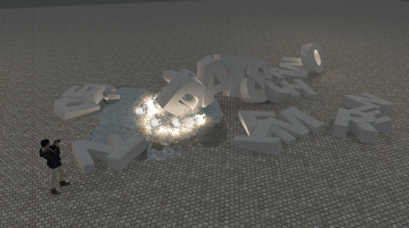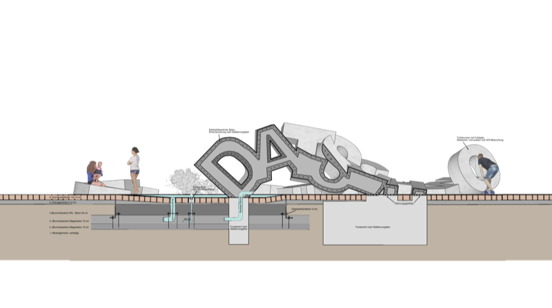 Dimensions: letter height: 1.70 m fountain basin: 6.90 x 5.70 x 0.1 m