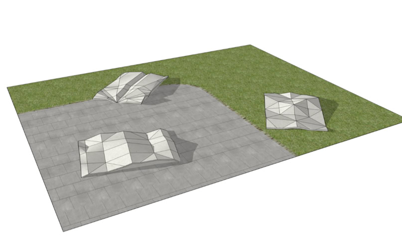 white concrete | 3 objects | 1 x 1,4 x 0,18 m