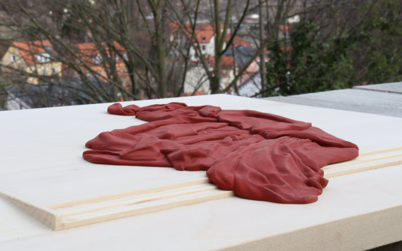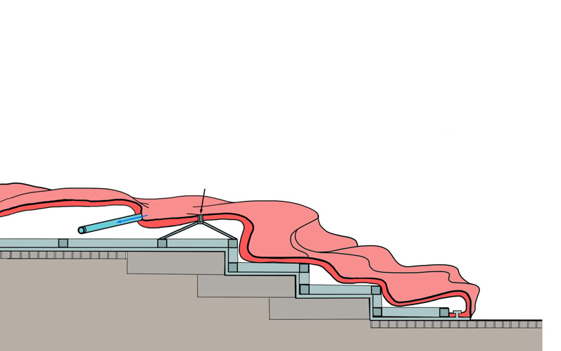 rot pigmentierter Polymerfaserbeton | red pigmented polymer fiber concrete | 8 x 15 x 0,5 meter | 2019