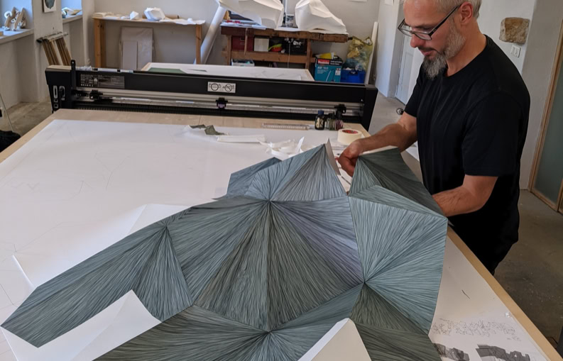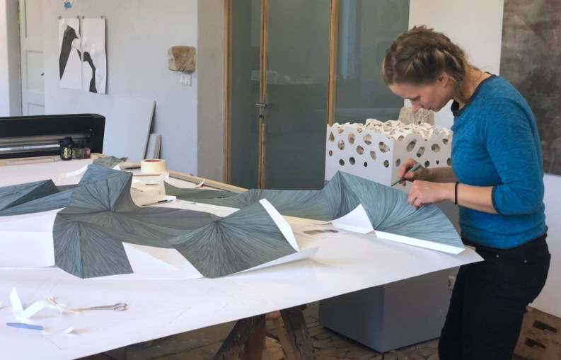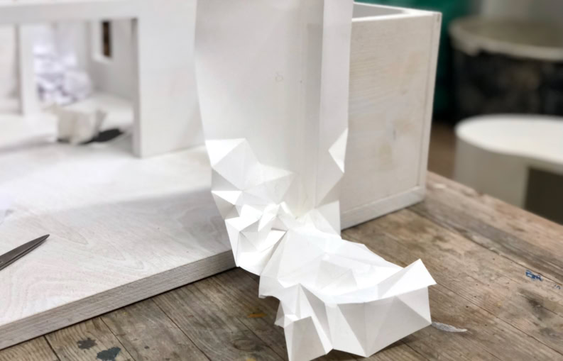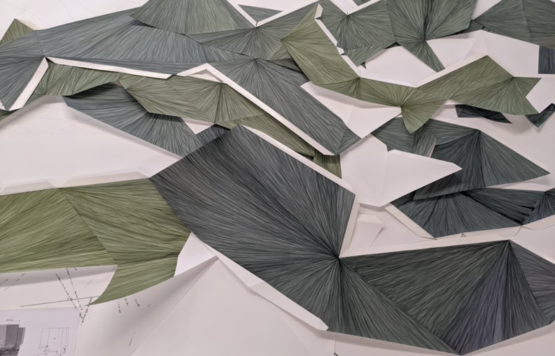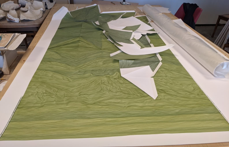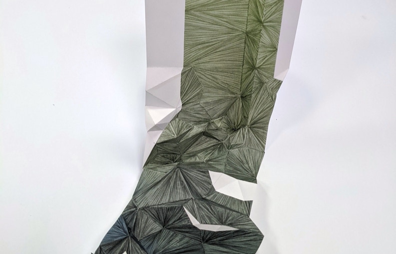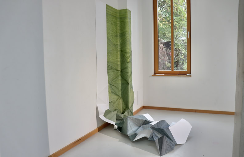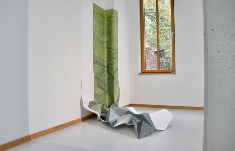 Ink on recycled paper, folded, glued | 250 x 150 x 170 cm | 2022
