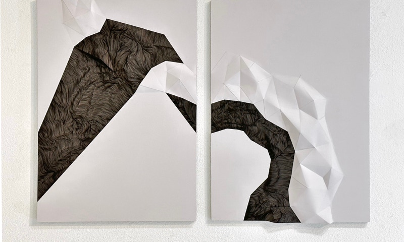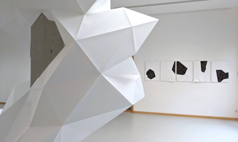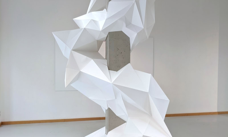 PAPERDINX is a joint project by the two artists Lisa Pahlke and Matthias Lehmann. Two positions approach the material paper from different perspectives and reflect on the intersections of their working methods. Both are united by the will to escape a two-dimensional regimentation - here the paper surface, there the computer screen - by different means. With the questioning of spatial and architecture-related arrangements made of paper, which are characterized by inside and outside, demarcation and penetration, light and shadow, color and monochrome, fragility and power, processes are to be experimentally examined and further developed in a joint work process. Both approaches meet within an expansive installation.