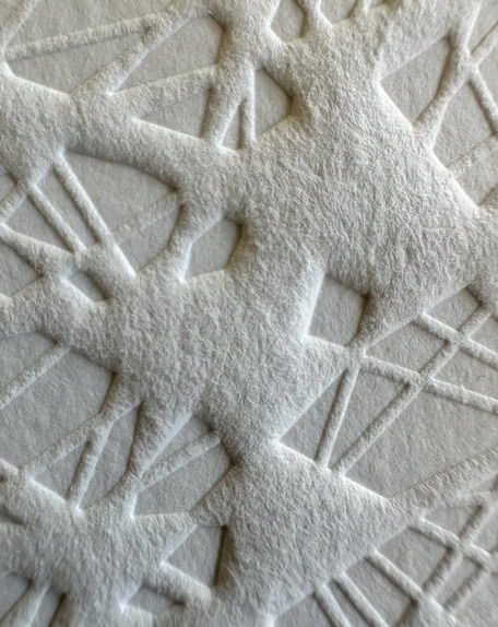 Embossed into the paper with high pressure and without the use of color, the work unfolds its spatial effect solely through light and shadow. It emphasizes the sensitive three-dimensionality of the material and at the same time makes hidden orders within the fibre structure visible. PRÄGUNG is an abstract cartography of information flows, growth processes and energetic connections - and refers to universal principles of structure, communication and networking in nature and technology.