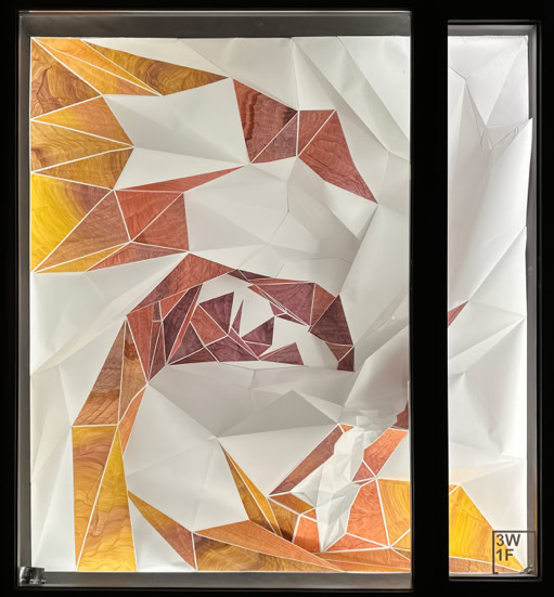 Eine für den Projektraum 3W1F entwickelte von außen über das Schaufenster wahrzunehmende skulpturale Anordnung aus Papierverwerfungen, orientiert sich an der Schaufenstersituation und dekonstruiert sie gleichermaßen durch unregelmäßige Auswucherungen. Zeichnerische Bruchstücke auf Teilflächen der Papierinstallation erzeugen räumliche Illusionen, die das reale Konstrukt aufgreifen und die unterschiedlichen Tiefen des Raumes verschieben. |