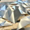 Ineinander verschachtelte Dreiecksformationen fügen sich zu einem zerklüfteten, gewölbten Rechteck zusammen, welches in seiner Grundform an ein zerknautschtes Blatt Papier erinnert. Zwei unauffällige kreisförmige Bohrungen am Rand der weiß lackieren Aluminiumskulptur deuten auf die Darstellung eines gelochten A4 Blattes und rufen das Bild einer, im Bildungsbetrieb laissez-faire auf Papier gebrachten und wieder verworfenen Aufzeichnung hervor.