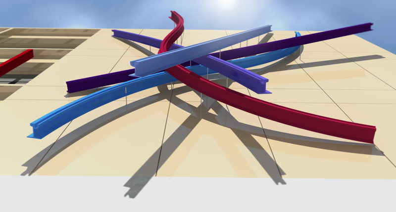 Der Entwurf Verkehrsknoten verbindet die Besonderheiten des historisch geprägten Standortes des ehemaligen Straßenbahnhofes Tolkewitz, mit der bevorstehenden Umnutzung zum Schulstandort. Der Eindruck des Vorplatzes an der Wehlener Straße, an deren Hauptfassade die Kunst am Bau platziert werden soll, ist maßgeblich durch das kurvige Geflecht der sich kreuzenden Bahnschienen bestimmt. Diese Formvielfalt nimmt der Entwurf auf und überträgt sie auf die Hauptfassade. Dazu werden die historischen Straßenbahnschienen mit Ihrem Originalprofiel „Ri 60“ (Rillenschiene 60) abgeformt und als einzelne, sich überlagernde Gleissegmente, in Epoxidharz ausgebildet. Die sich ineinander verknotenden Straßenbahngleiße sind farbig voneinander abgesetzt und orientieren sich am architektonischen Farbkonzept des Schulgebäudes.