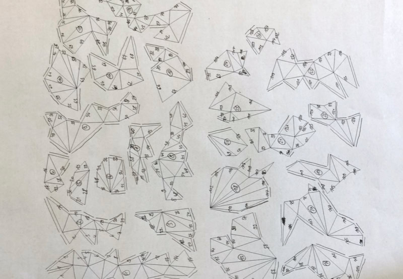 WOOF markiert die erste Gemeindschaftsarbeit von Lisa Pahlke und mir. Als Vorbereitung auf einen gemeinsamen Arbeitsprozess entstanden zuvor verschiedene Arbeitsproben, die sich experimentell an das Besondere des jeweiligen anderen Arbeitsfeldes heran tasteten und auf verschiedene Vorgaben des Gegenüber reagierten. Diese ersten Ergebnisse waren aus unserer Sicht vielversprechend und bewogen uns zu einer Zusammenarbeit, welche die Erarbeitung und Realisierung gemeinsamer bemalter, Papierobjekte und -installationen oder als Umkehrung die Faltung bereits bemalter Papierbögen zum Ziel hat.