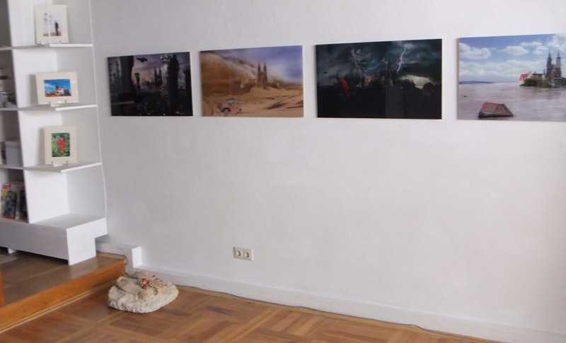 Bei der Flut von 2013 in Meißen, verdrängte Wasser den gewohnten Lebensraum. Straßen und Plätze verschwanden unter einer braunen Suppe. Was passiert, wenn man diese Verdrängung weiterspinnt oder wie sieht es aus, wenn die gewohnte Umgebung durch ein anders Material als dem des Wassers eingenommen wird. Die Bilder des Zyklus Meißen Apokalypse zeigen uns diese Szenarien, die neben der bloßen Präsentation der veränderten Räumlichkeit automatisch den Klimawandel und zunehmende Naturkatastrophen thematisieren.