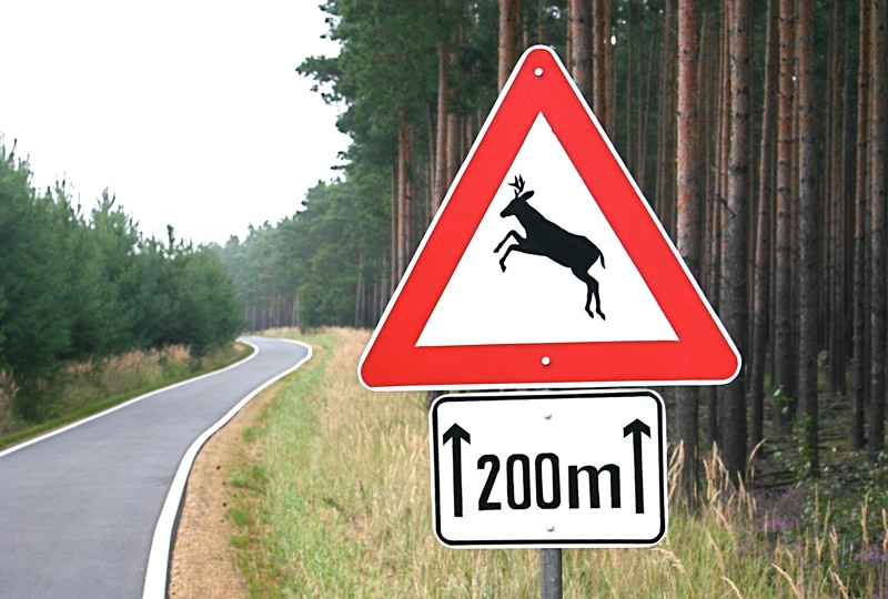 Mehrere innerhalb dieser Baumreihen positionierte und in einzelne Frames aufgeteilte Silhouette eines weißen Hirsches ziehen sich zu bewegten Bildern einer kurzen Filmsequenz zusammen wenn ein Radfahrer diese Wegstecke passiert. In Abhängigkeit von der Fahrgeschwindigkeit des Passanten wird dieser einen mehr oder weniger schnell durch den Wald galoppierenden weißen Hirsch sehen.Bei einer Fahrgeschwindigkeit von 20 km/h (was ungefähr der Durchschnittsgeschwindigkeit eines Radfahrers entspricht) werden 5,5 Einzelbilder pro Sekunde sichtbar. Der „Film“ wird bei dieser Geschwindigkeit also noch leicht ruckeln. Um eine ruckelfreie Filmsequenz zu erleben, was bei 12 Bildern pro Sekunde der Fall sein sollte, benötigt man eine Geschwindigkeit von 43,2 km/h. Für die Besucherinnen und Besucher bleibt die Aufgabe, die optimale Geschwindigkeit für das Betrachten des „Films“ herauszufinden, ohne dem weit verbreiteten „Bambi-Irrtum“ zu verfallen.