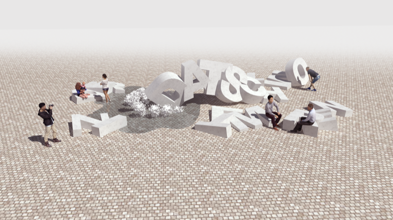 Dimensions: letter height: 1.70 m fountain basin: 6.90 x 5.70 x 0.1 m
