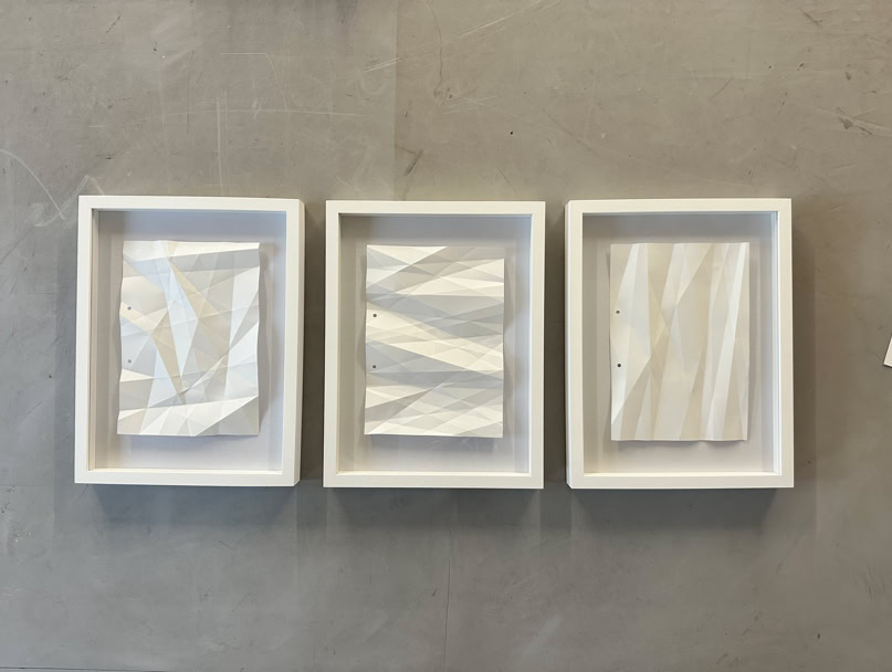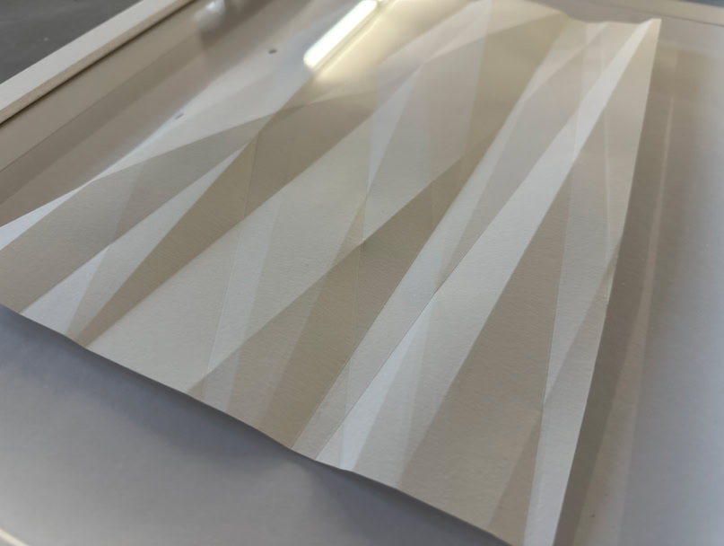 Matthias Lehmann's starting point and the basis of many of his artistic works is his experimental approach to paper, a material that loses its two-dimensional form with the first crease or curvature and inevitably transitions into three-dimensional space. In numerous folders and archives, he experimentally explores the possibilities of folding and curving on a small scale in order to subsequently expand them into larger, sometimes expansive works and installations.