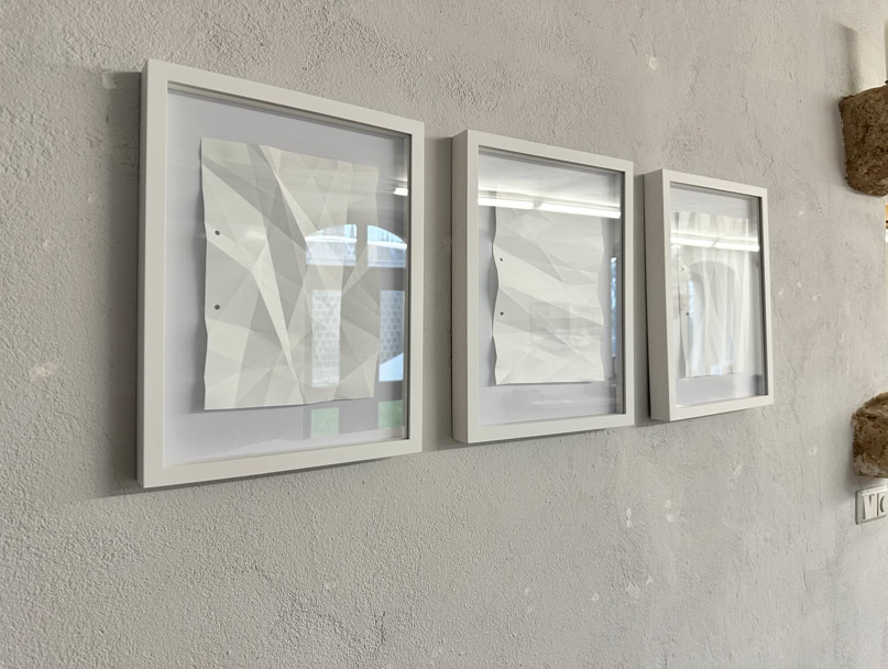 Der experimentelle Umgang mit dem Material Papier, das durch seine Beschaffenheit bereits mit dem ersten Knick oder der ersten Wölbung seine zweidimensionale Form verliert und unweigerlich in den dreidimensionalen Raum übergeht, bildet den Ausgangspunkt und die Grundlage vieler künstlerischer Arbeiten von Matthias Lehmann. In zahlreichen Ordnern und Archiven erkundet er experimentell die Möglichkeiten des Faltens und Wölbens im kleinen Maßstab, um diese anschließend auf größere, teilweise raumgreifende Werke und Installationen auszuweiten. |