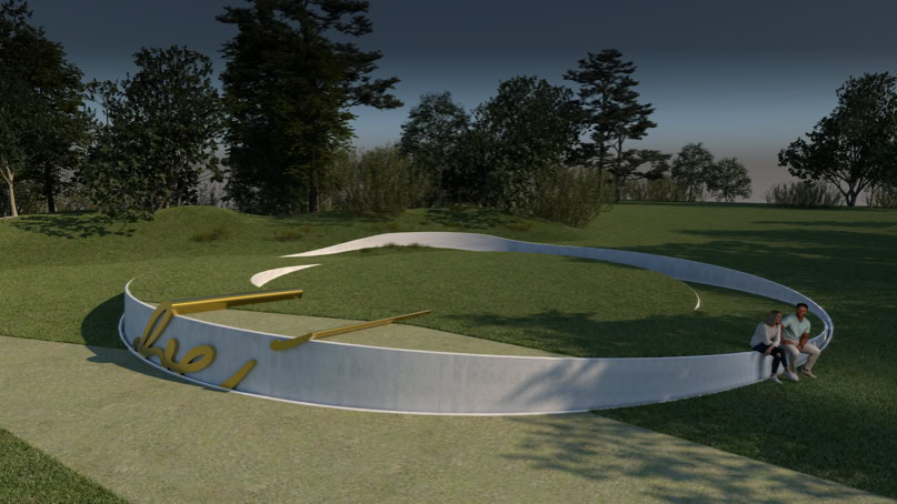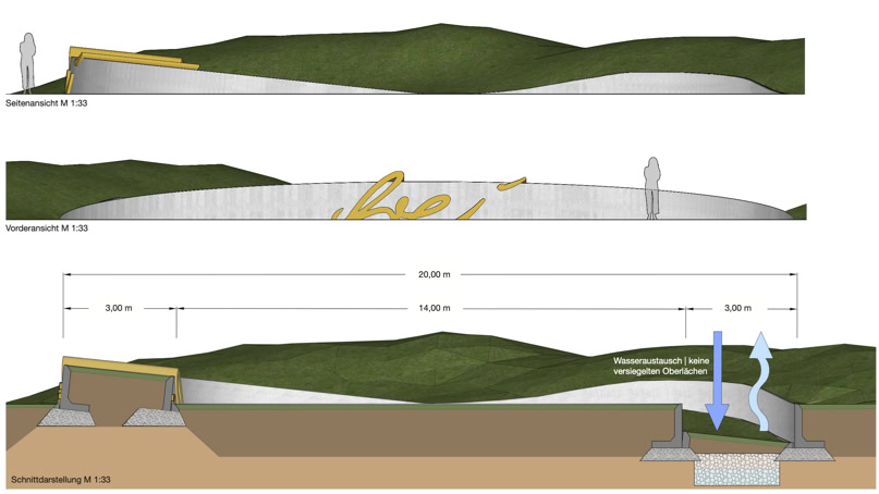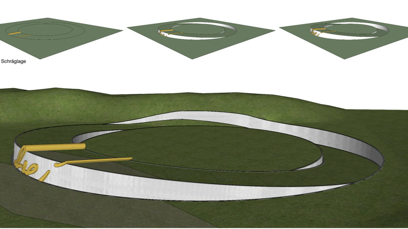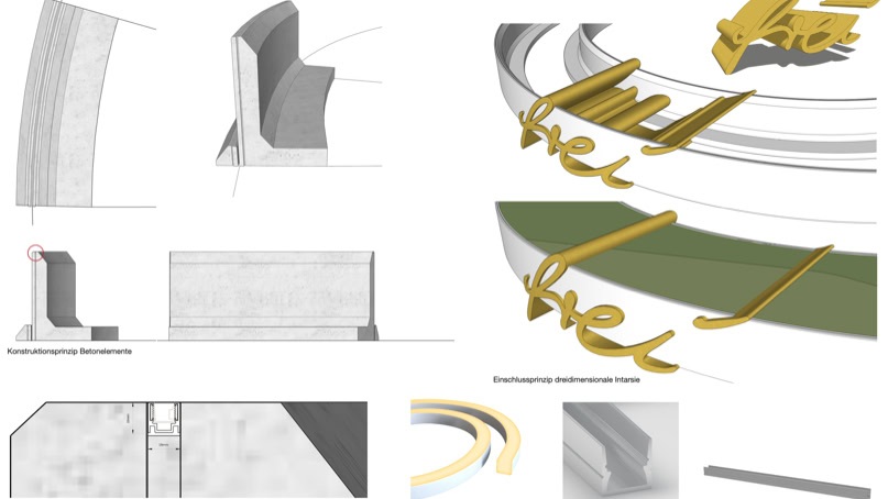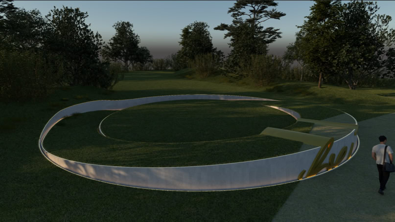 45.7% of the world's population lives in freedom. Freedom is not static and must be constantly defended and nurtured. The Peaceful Revolution of 1989 showed what commitment to freedom and democracy can achieve. Now it is important to remember the privilege of this freedom and to support others in their commitment to democratic coexistence, because freedom is a universal right that belongs equally to all people. In Leipzig, a circular monument rising from the surrounding landscape commemorates the dynamism of the past and present and the fragility of freedom. Enclosed in the circle like a core is the word “free,” a flashing treasure, partly visible, partly hidden. A reference to the still unfulfilled potential of global freedom that needs to be uncovered. At dusk, the monument lights up and offers a place for individual and collective reflection on past achievements and current challenges.