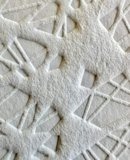 Embossed into the paper with high pressure and without the use of color, the work unfolds its spatial effect solely through light and shadow. It emphasizes the sensitive three-dimensionality of the material and at the same time makes hidden orders within the fibre structure visible. PRÄGUNG is an abstract cartography of information flows, growth processes and energetic connections - and refers to universal principles of structure, communication and networking in nature and technology.