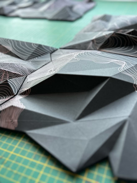 SPIN II is a further development of its predecessor made exclusively of black paper, the outlines of which always match the neighboring field and can be continued endlessly in one surface.
