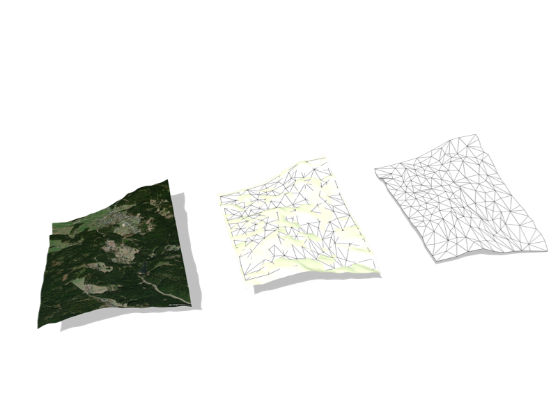 Die Dreiecksanordnungen geben die Oberflächenbewegung einer bestimmten Landschaft wieder. Sie bilden in reduzierter Weise die topografische Modellierung der umgebenden Bergformationen und stellen damit eine Verbindung zum Ort der Ausbildungsstätte und dem angrenzenden, stark durch die geographische Lage geprägten Forstrevier her. Die Skulptur verweist mit dem poetischen Bild eines schwebenden Blattes auch auf die, an diesem Ort stattfindende Informationsvermittlung und -weitergabe.