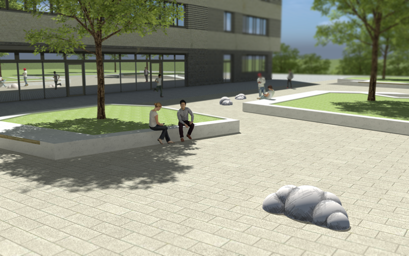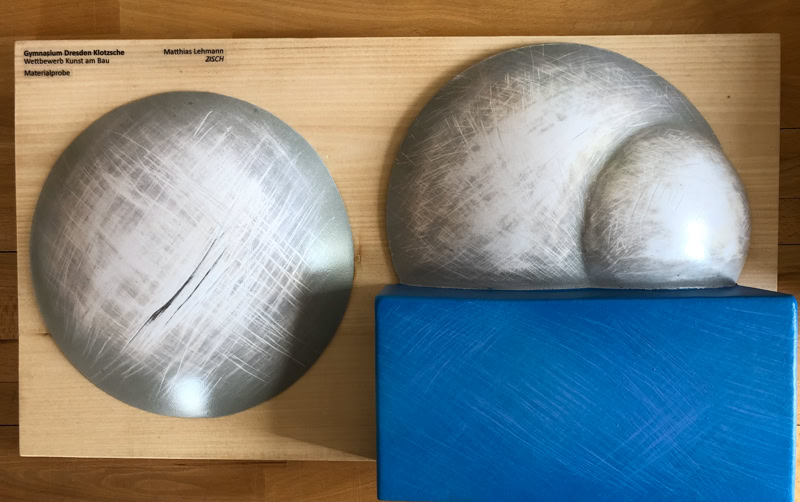 Der Entwurf bezieht sich auf das erhalten gebliebene und im neuen Gebäude wieder seinen Platz findende Bleiglasfenster von Gerhard Keil und dessen Darstellung unterschiedlicher Flugobjekte, sowie auf die Historie der Schule, deren Vergangenheit maßgeblich von der Existenz der FlugzeugwerLen in Dresden Klotzsche geprägt war.